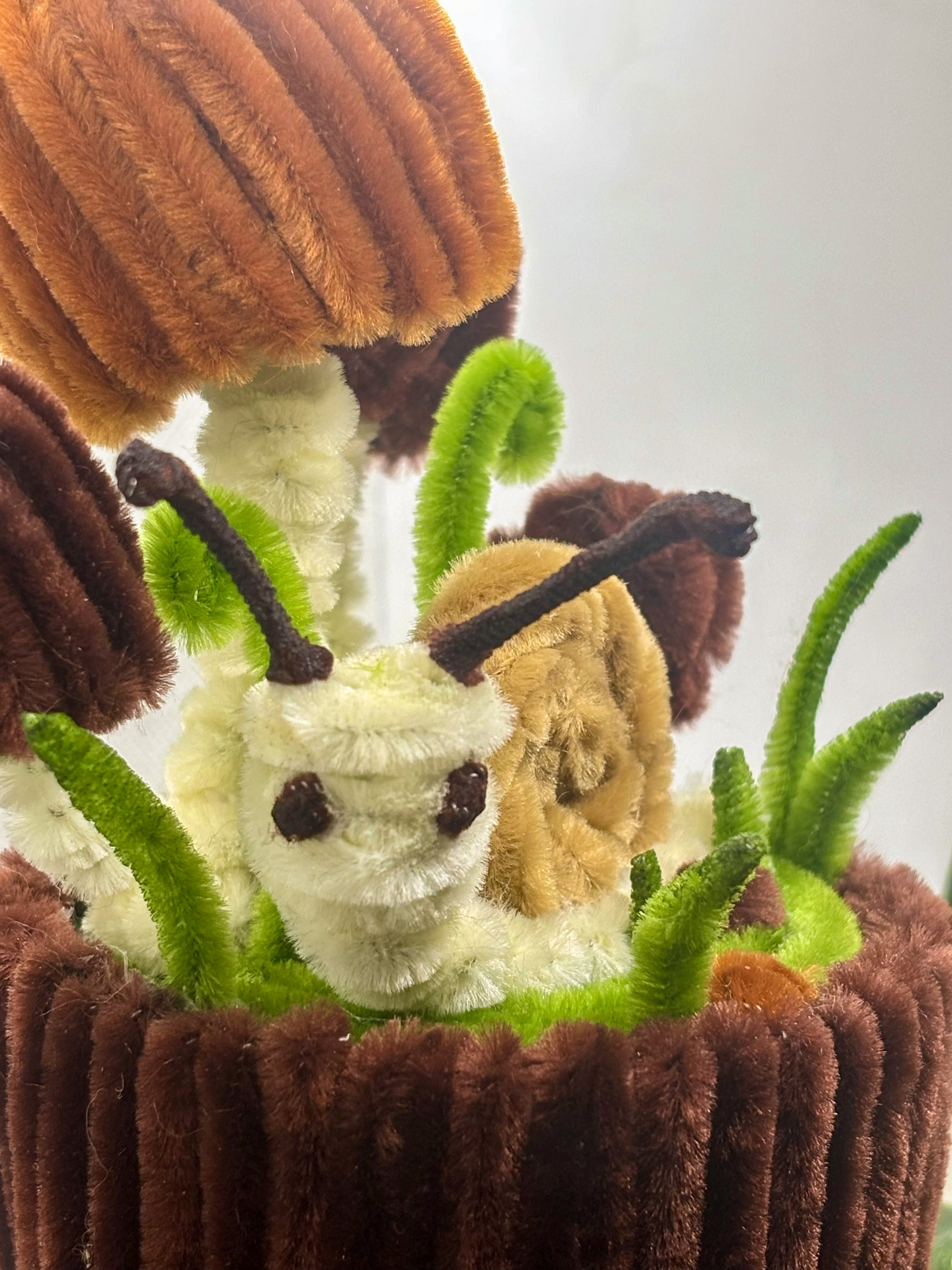 Matériaux : Fil chenille, tige en fer, papier floral, ruban...