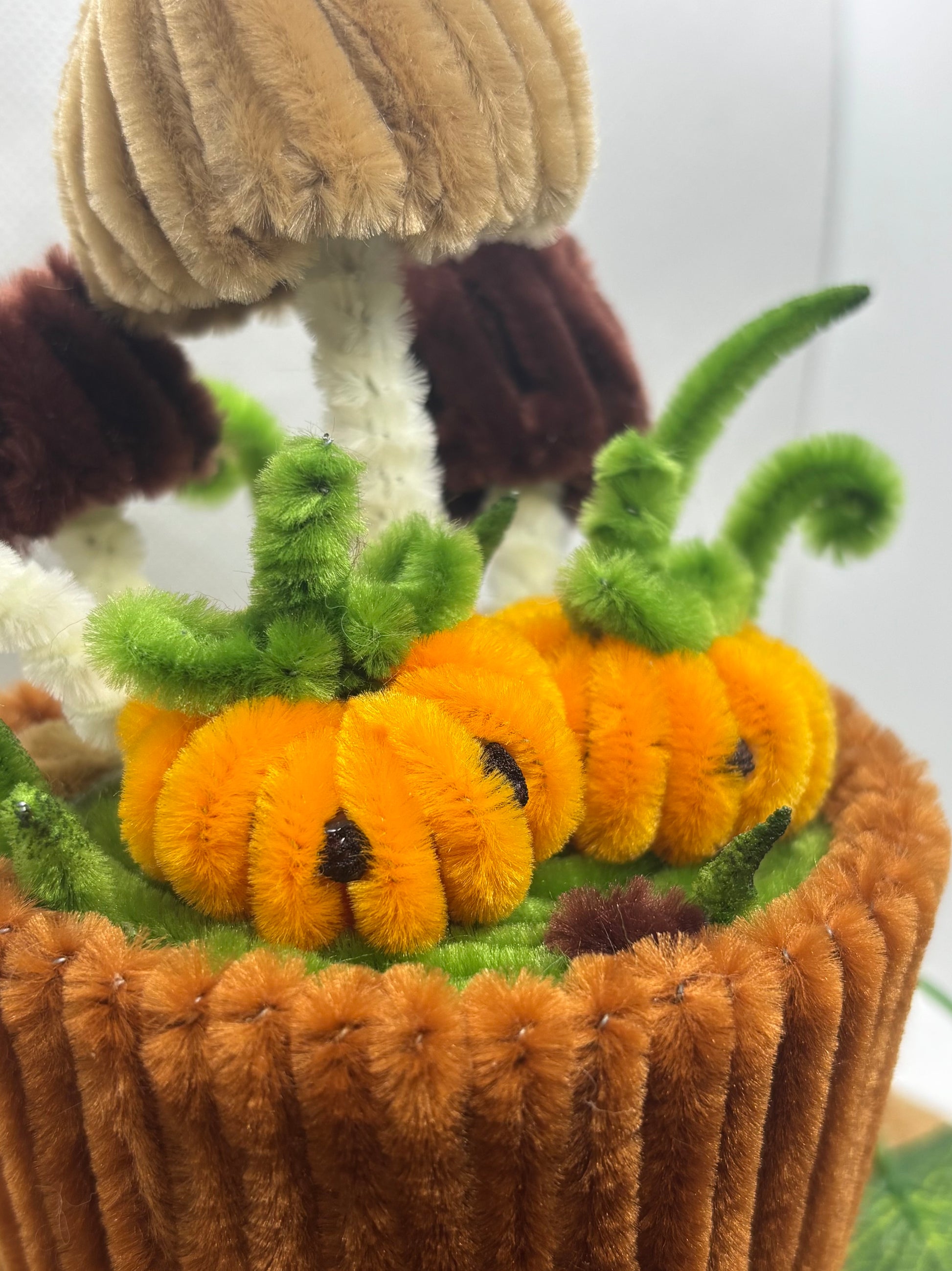 Matériaux : Fil chenille, tige en fer, papier floral, ruban...